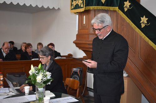 Az igei részt követően a gyülekezet gondnoka, Antal Árpád köszönte meg a szolgálatát. Rövid szünet alatt megtörtént a számbavétel, majd az egyházmegye gondnoka, Oros Zoltán bejelentette a határozatképességet: a 44 alkotó tagból 32 volt jelen, ezzel megnyitotta a közgyűlést.