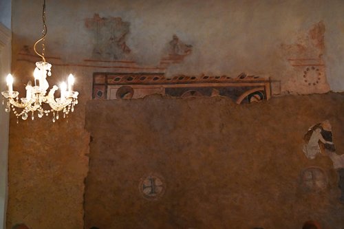 A vizesedés miatt egy bizonyos magasságig eltávolították a vakolatot, majd miután a villanyvezeték is elkészült, mint mondta, nem hagyta a kíváncsiság, s kutakodásának eredményeként freskótöredékek kerültek elő az északi falon. Restaurátori kutatás majd helyreállítás vette kezdetét, hogy előkerüljenek a múlt emlékei, amelyek ismét a Szlovák Kulturális Minisztérium támogatásból megvalósultak meg.