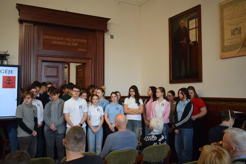 A Lévay József Református Gimnázium és Diákotthon 11. D osztályos tanulói felelevenítették előttünk a gályarabok történetét egy-egy mondatba sűrítve a szabadulás tényét, majd zenés ifjúsági betétjükkel rávilágítottak arra, hogy hittel vízre léphetünk, mert Isten elrejt bennünket és megmutatja azt a sok csodajelet, hogy nála lett borrá a víz és holtakat életre hív. Jó volt együtt dalolni a felnövekvő nemzedékkel és megénekelni hitünknek a szabályait.
