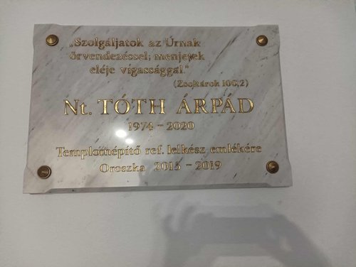 Temploma szószéke mellé került az az emléktábla, amely hirdeti, hogy templomépítő lelkésze már 2020-ban hunyt el.